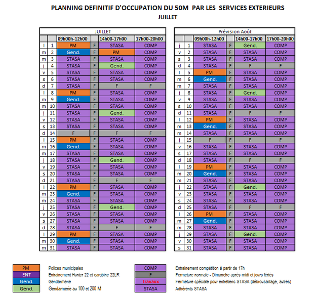Le stand du club de tir de la STASA est également soumis, de par son occupation par les services administratifs (Police etc.) à un planning. Vous pouvez le consultez ci-dessous pour le mois en cours.